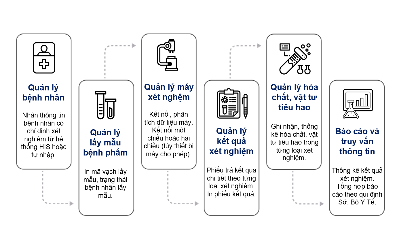 ∴ Quản lý tất cả máy xét nghiệm tại các khoa. Giúp hoạt động trơn tru, hiệu quả và tiết kiệm